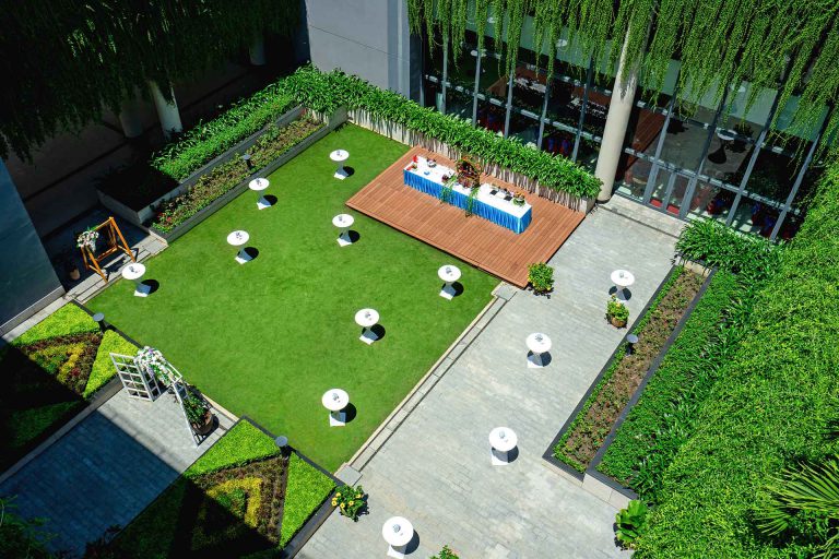 Gồm 02 sân tập ngoài trời hiện đại, thích hợp để rèn luyện sức khỏe, giải trí sau giờ làm việc, giao lưu với đối tác